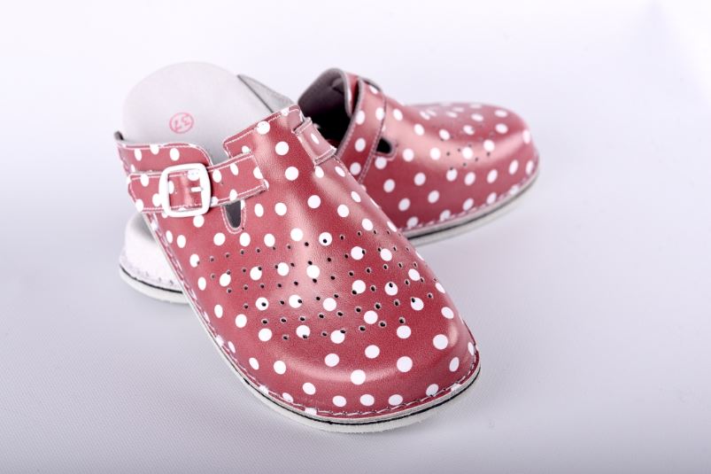 Ekskluzywne obuwie medyczne wykonane z naturalnych materiałów. Podeszwa o profilu ortopedycznym ma za zadanie pobudzenie receptorów stopy, łagodząc skutki długotrwałej pracy w pozycji stojącej. Profil z wyżłobieniem pod piętę i palce, oraz wałkiem podpalcowym pomaga w podparciu łuku podłużnego stopy. Obuwie zapewnia doskonały komfort dzięki wyścieleniu miękkim materiałem plastycznym i powłoce z naturalnej skóry.