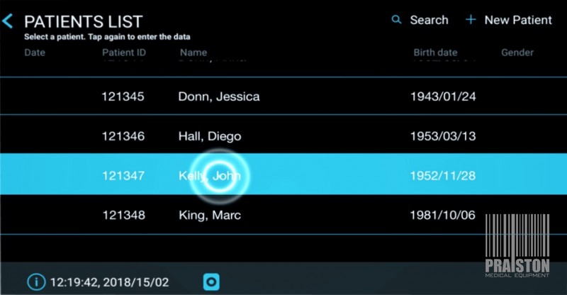 - Automatycznie monituje o wprowadzenie informacji o pacjencie za pomocą klawiatury do monitora przed rejestracją. Informacje o pacjencie są zapisywane wraz z nagraniem na USB lub zewnętrznym dysku twardym, co zapewnia sprawny przebieg pracy i bezpieczeństwo danych,