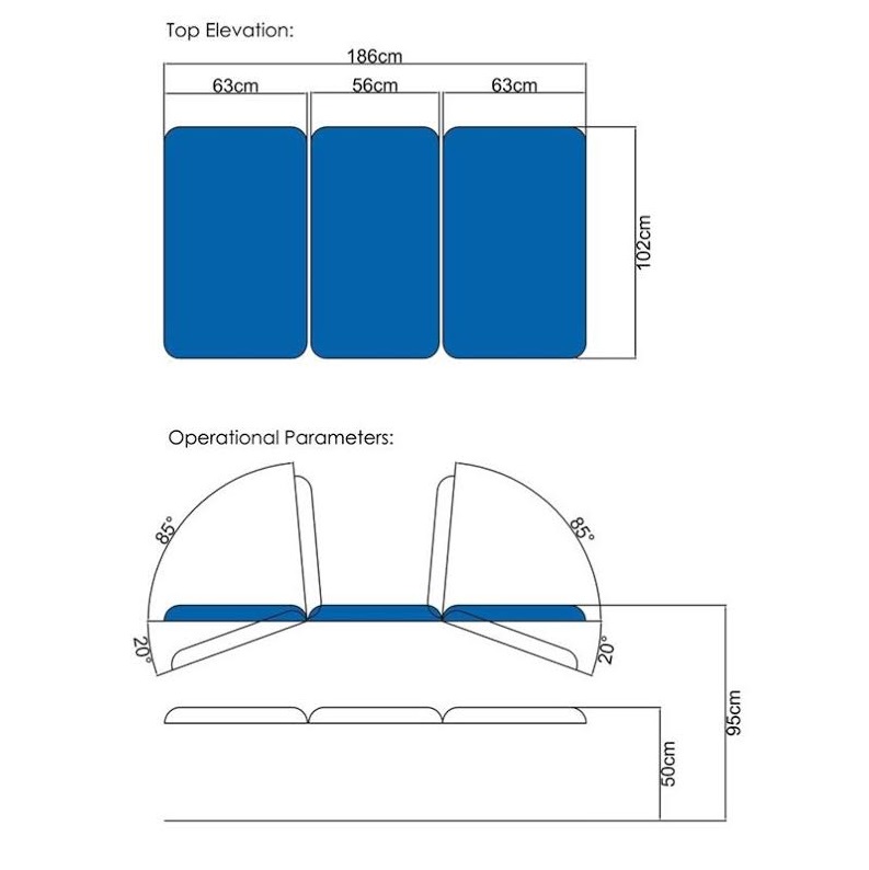 3-sekcyjny, bariatryczny stół rehabilitacyjny gwarantujący wyjątkowo stabilną powierzchnię także dla bardzo ciężkich pacjentów z zaburzeniami neurologicznymi i urazami głowy. (Barierki dodatkowo w opcji)