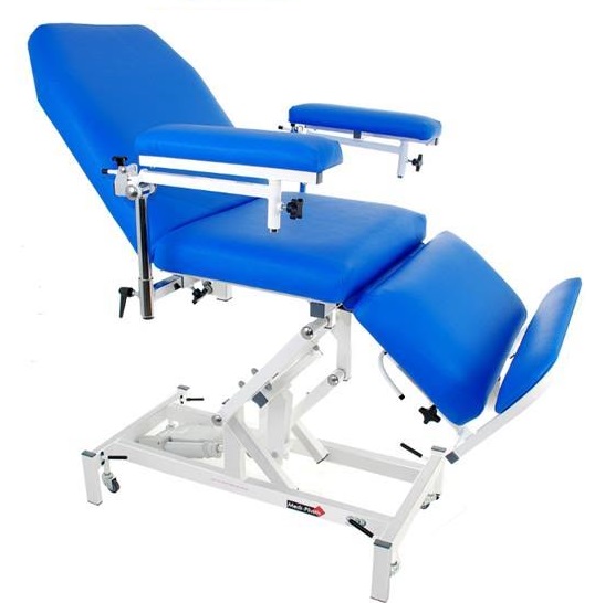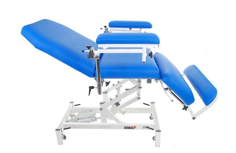 Fotel do dializ zaprojektowany z myślą o komforcie dializowanego pacjenta. Regulacja wysokości oraz sekcji pleców realizowana przy pomocy pilota przewodowego. Fotel tapicerowany specjalną mieszanką pianki o różnym stopniu gęstości i wyprofilowaniu.