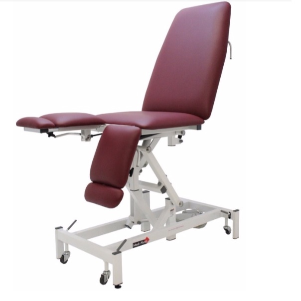 Uniwersalny, prosty i niezawodny fotel zabiegowy z elektryczną regulacją wysokości. Nisko opuszczane leże ułatwia przełożenie pacjenta z /na wózek inwalidzki. Fotel idealny do niewielkich pomieszczeń, może być używany jako 3-sekcyjny stół zabiegowy. Fotel może być wykorzystywany do szerokiej gamy zabiegów medycznych. Wersja z przechyłami została wyposażona w możliwość uzyskania najbardziej naturalnej pozycji siedzącej, z minimalnie uniesionymi kolanami, ułatwiając jednocześnie dostęp do pacjenta dla personelu medycznego.