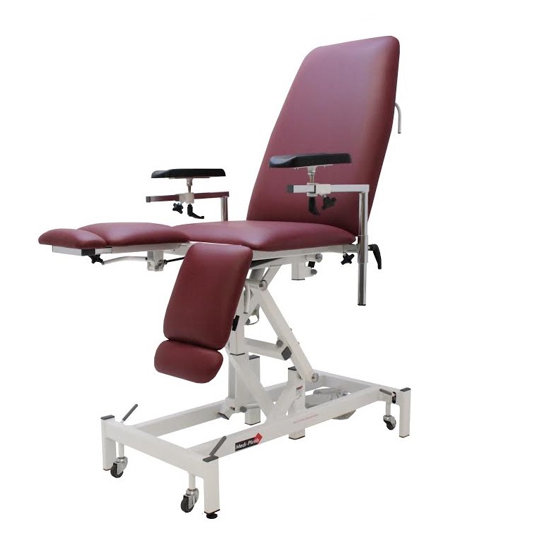 Uniwersalny, prosty i niezawodny fotel zabiegowy z regulacją wysokości. Nisko opuszczane leże ułatwia przełożenie pacjenta z / na wózek inwalidzki. Fotel idealny do niewielkich pomieszczeń, może być używany jako 3-sekcyjny stół zabiegowy. Umożliwia siadanie pacjenta z przodu, z boku, a po zamontowaniu dodatkowych/zmianie akcesoriów może służyć jako fotel podiatryczny lub do gipsowania.
