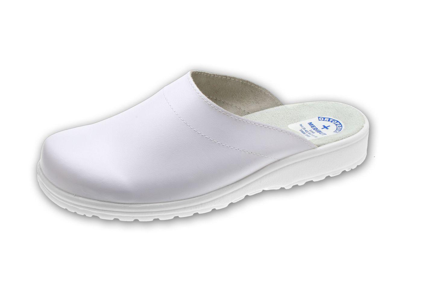 Obuwie damskie i męskie na spodach przeciwpoślizgowych z profilem ortopedycznym, cholewką i wyściółką skórzaną. Cholewka gładka.