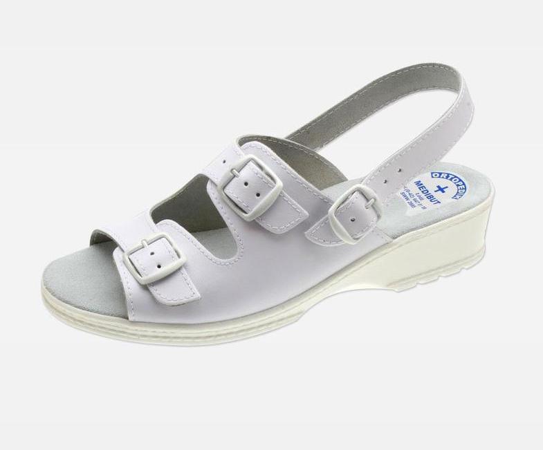 Sandały damskie na koturnie, na spodach przeciwpoślizgowych, z profilem ortopedycznym. Wyściółka i cholewka skórzana, możliwość regulacji tęgości.