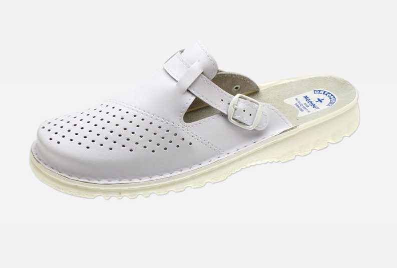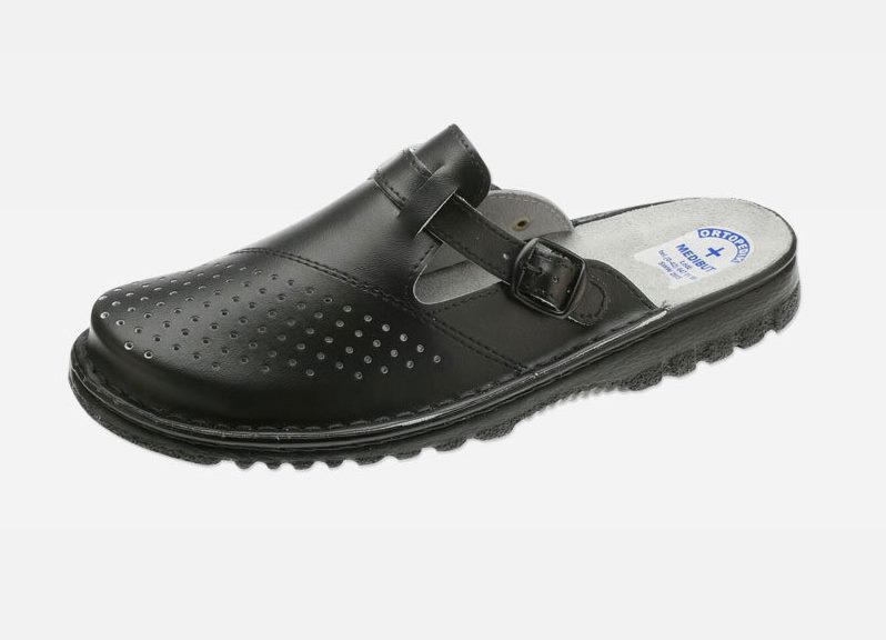 Obuwie męskie przeszywane, na spodach przeciwpoślizgowych z profilem ortopedycznym. Wyściółka i cholewka skórzana, możliwość regulacji tęgości. Cholewka gładka lub z perforacją.