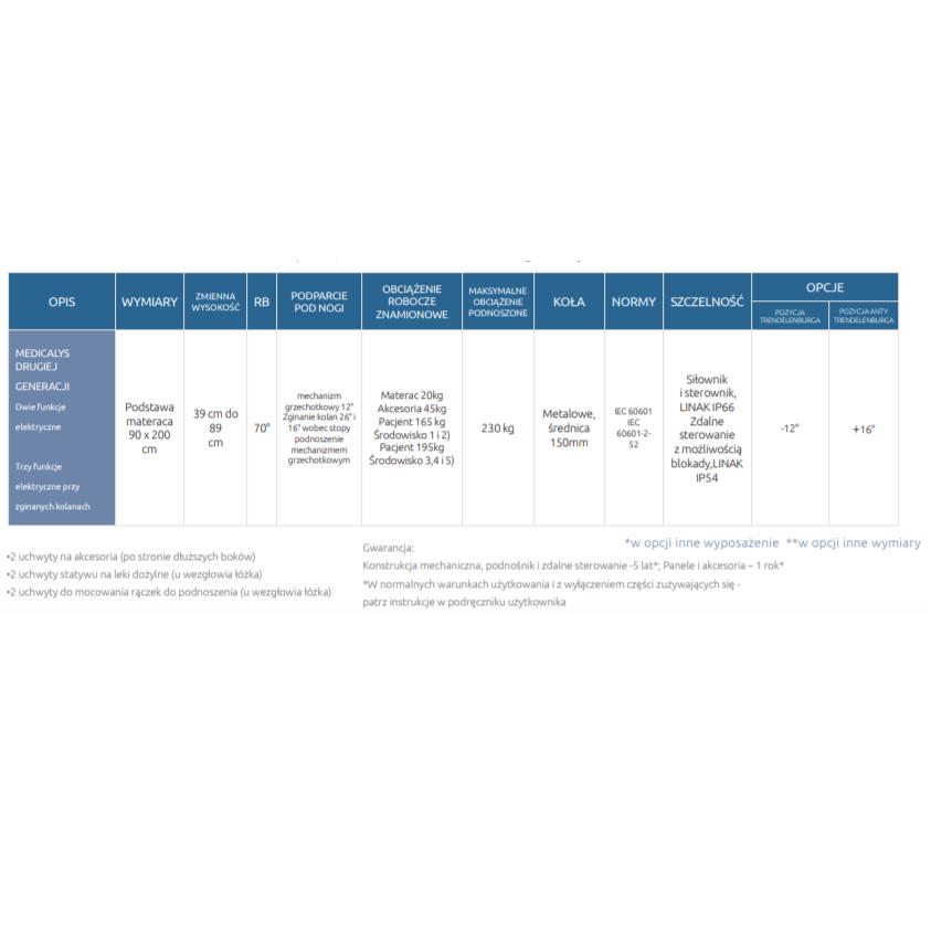 - Łóżko jest wygodne i bezpieczene zarówno dla pacjenta, jak i personelu medycznego. Łóżko Medicalys jest w pełni elektrycznie sterowane i posiada sterownik z czytelnymi oznaczeniami.