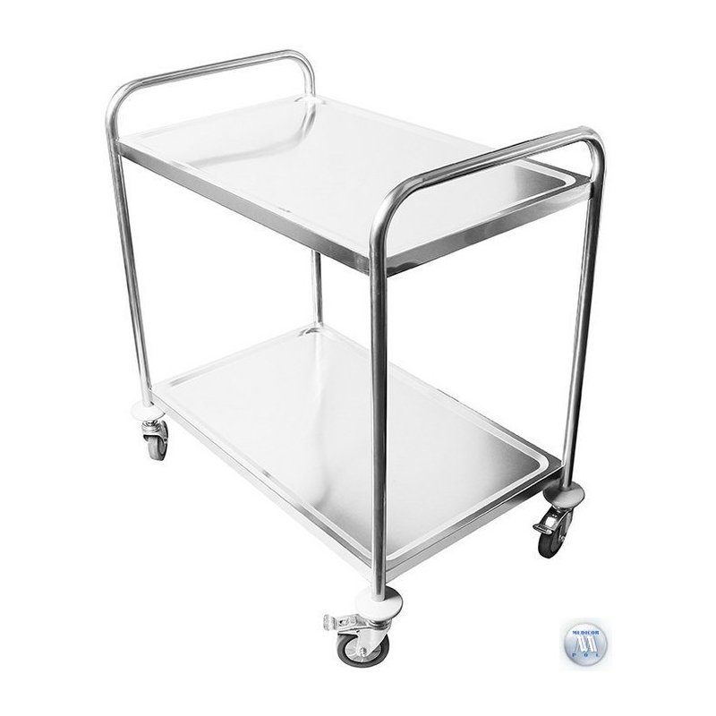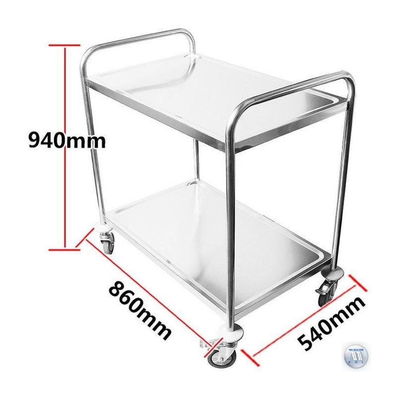 Stolik zabiegowy 2-półkowy ze stali nierdzewnej z uchwytami o profilu okrągłym
