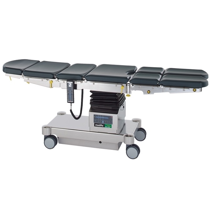 - Ogólnochirurgiczny stół operacyjny z napędem elektrohydraulicznym z możliwością konfigurowania blatu oraz pełnym sterowaniem z pilota.
