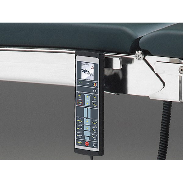 - Elektryczna regulacja funkcji stołu za pomocą pilota w trwałej obudowie poliuretanowej z kolorowym wyświetlaczem.