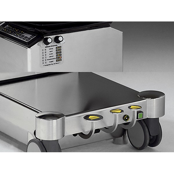 - Alternatywny system regulacji wszystkich funkcji stołu, gwarantujący pracę stołu w przypadku awarii, braku prądu czy rozładowania akumulatora.