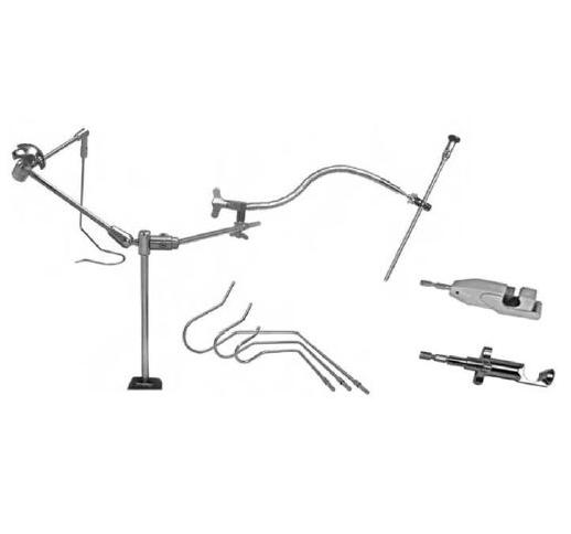 Małe systemy ram otwartych - Rama typu mini-Bookler na haki stałe wielorazowego użytku i tytanowo-aluminowa rama DYNA-Track zarówno na haki stałe wielorazowego użytku jak i haczyki samozaciskowe na silikonowych taśmach – zabiegi w obrębie szyi, głowy, tarczycy, krocza, odbytu, piersi, w chirurgii dziecięcej itp.