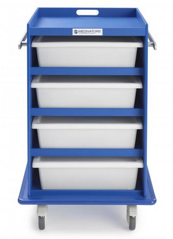 Wózki do bezpiecznego transportu endoskopów. BEZPIECZNY I WYGODNY TRANSPORT ENDOSKOPÓW: • Zminimalizuj możliwość uszkodzenia endoskopów i przenoszenia zagrożeń na terenie placówki. • Przykrywane naczynia wielokrotnego użytku redukują koszt transportu w placówce. • Transport endoskopów w oddzielnych naczyniach na oddzielnych półkach chroni przed uszkodzeniem. • Barierka na każdej półce zabezpiecza naczynie przed ześlizgnięciem. • Zredukowane ryzyko przeniesienia zanieczyszczeń z pracownika na endoskop i z endoskopu na pracowników w trakcie transportu i przed myciem. • Spełnione wymogi w zakresie transportu endoskopów ustalone przez producentów endoskopów oraz AORN®, SGNA® i ASGE®.