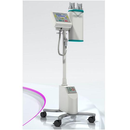 Dwugłowicowy bezprzewodowy wstrzykiwacz kontrastu i soli fizjologicznej firmy MEDTRON współpracujący z tomografami komputerowymi.