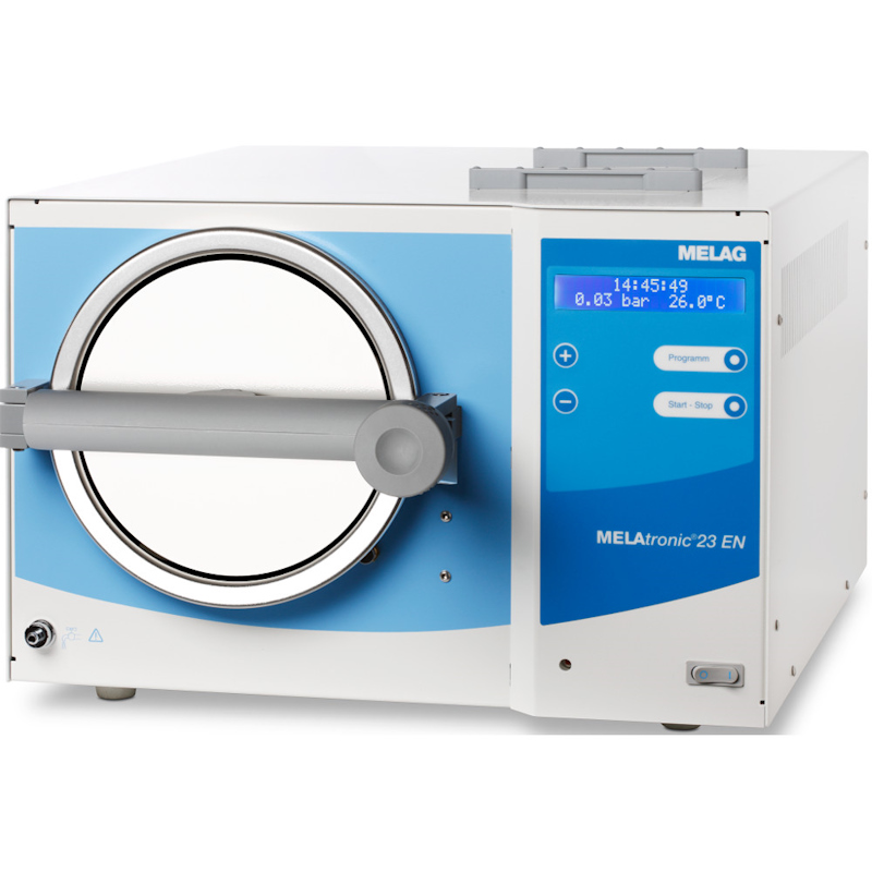 Wysokiej jakości komora ze stali nierdzewnej, funkcje ochronne i długotrwałe części zapewniają niezawodność przez wiele lat. MELAtronic 23 EN jest zbudowany dla większej placówki. Można w nim sterylizować wsady do 4 kg na 5 tacach lub maks. 400g tekstyliów.