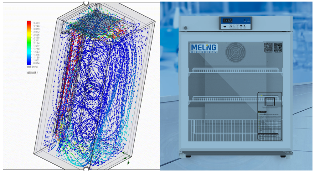 Do chłodzenia powietrzem wykorzystana jest specjalna konstrukcja z wylotami powietrza i dużą prędkością przepływu powietrza obiegowego, co pozwala utrzymać bardzo dobrą jednorodność temperatury wewnątrz komory.