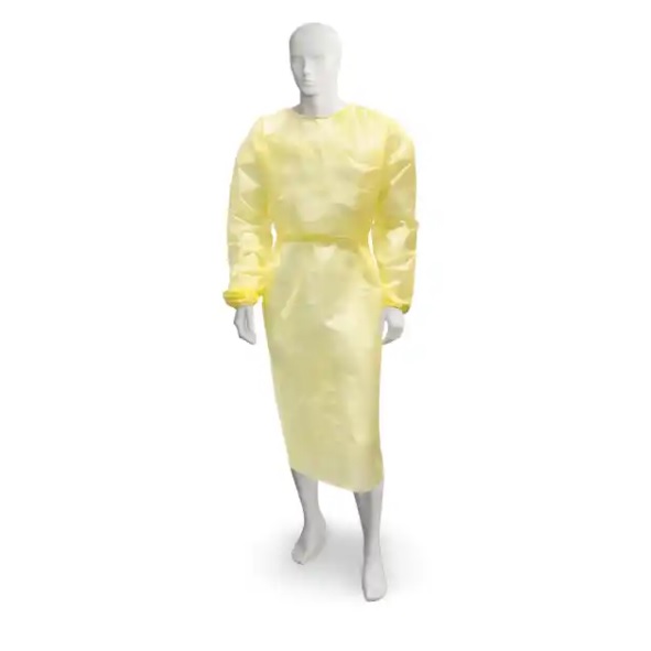 • Żółty fartuch medyczny izolacyjny wykonany z włókniny polipropylenowej pokryty folią polietylenową, niesterylny.