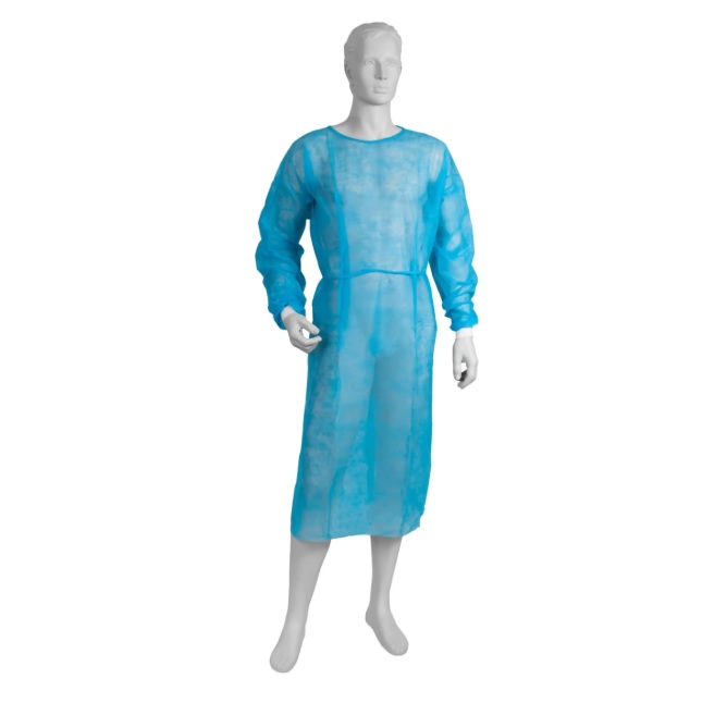 - Niebieski fartuch medyczny wykonany z włókniny polipropylenowej, niesterylny. Gramatura 30 g. Rękaw zakończony mankietem. Pakowany po 10 sztuk.