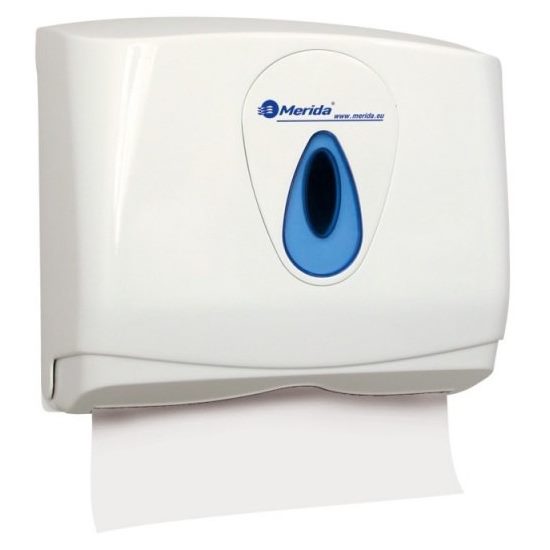 Pojemnik na pojedyncze ręczniki papierowe. Wykonany z wytrzymałego tworzywa ABS. Pojemność urządzenia wynosi do 250 sztuk ręczników. Pojemnik dostępny w kolorze białym. Posiada okienko do kontroli ilości ręczników. Zamykany na kluczyk.