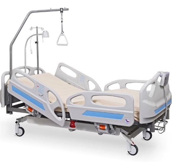 Wielofunkcyjne łóżko szpitalne ANDIMED przeznaczone do leczenia i pielęgnacji chorych na oddziałach intensywnej opieki medycznej i oddziałach rehabilitacyjnych i kardiologicznych.