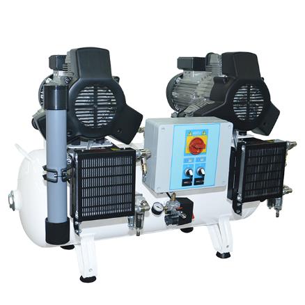 T (TIMER) – kompresory 2-agregatowe oferowane są w wersji z układem opóźniającym załączanie poszczególnych agregatów. Ilość zasilanych stanowisk uzależniona jest od zapotrzebowania pneumatycznego stanowisk oraz warunków w jakich pracuje kompresor i może się różnić od sugerowanej. Wydajność kompresorów podano przy ciśnieniu 5 bar.