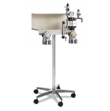 Zestaw z przejrzystymi zaworami wdechu i wydechu oraz zaworem bezpieczeństwa ciśnienia negatywnego. Posiada podwójną metalową półkę, możliwość montażu monitora lub respiratora, drugiego parownika czy stojaka na kroplówkę. W półce znajdują się specjalne otwory na rurki intubacyjne i inne dodatkowe przewody. Do stosowania przy zwierzętach do 150 kg. Urządzenie oferuję funkcję szybkiego podania tlenu, natychmiastowe zamknięcie obiegu z upustowym zaworem bezpieczeństwa (Occlusion Valve) i zawór bezpieczeństwa ciśnienia negatywnego w razie odcięcia dopływu gazów do pacjenta. Wyposażone jest w przepływomierz typu Dual View ze skała od 0.2 do 4l/min, manometr od -60 do +60cm H2O i zawór ciśnienia z regulacją. Możliwy montaż dwóch parowników czy dodatkowych przepływomierzy.