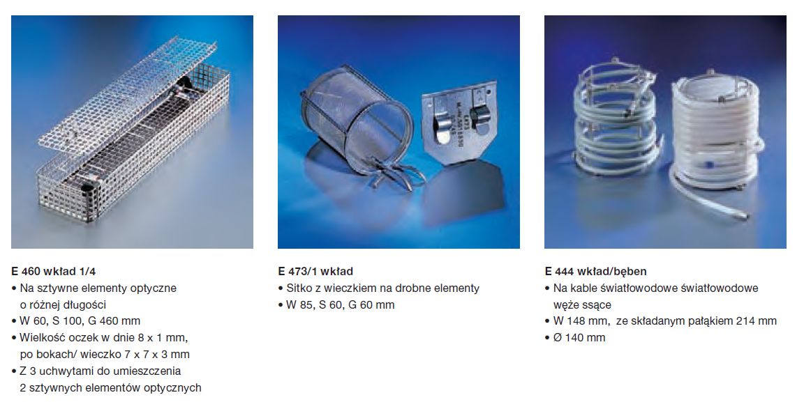 W celu dezynfekcji przyborów mikrochirurgicznych można wyposażyć E 450/1 na poziomie górnym w do 40 różnych dysz wtryskujacych, tulei płuczacych i złaczy. Sortowanie i rozmieszczenie bywaja różne i można je dostosowywać do potrzeb indywidualnych. Na poziomie dolnym można umieszczać pojemnik i sitka E 457, E 460 i E 451. Pojemnik – sitko E 451 na drobne elementy jak zawory tłoczkowe, połaczenia gwintowane, uszczelki itp. stanowi seryjny element wyposażenia. Możliwe jest mechaniczne odkażanie elementów optycznych marek Hopkins (firma Storz) oraz Lumina (firma Wolf) przy pomocy programu DESIN vario TD w automatach ze sterowaniem MCU przy bezpiecznym ułożeniu w E450/1.