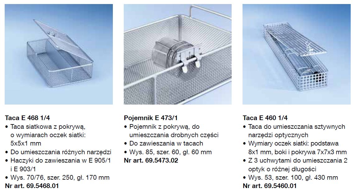 - Do umieszczania 6 pojemników sterylizacyjnych DIN z pokrywami