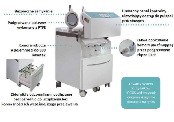 Procesor tkankowy LOGOS to najnowsze urządzenie włoskiej firmy Milestone w lini mikrofalowych procesorów tkankowych. LOGOS jest połączeniem urządzeń PATHOS DELTA (duża wydajność oraz możliwości pracy w trybie nocnym) oraz HISTOS 5 (możliwość ciągłego dokładania materiału w trakcie trwania procesu). Użytkownik może w łatwy sposób dostosować procesor do własnych potrzeb i wykorzystywać go w sposób odpowiedni do systemu pracy Zakładu.