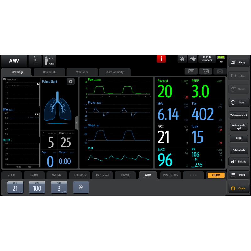 Dzięki zaawansowanym trybom wentylacji, respirator SV800 tworzy inteligentny system podejmowania decyzji, pomagając klinicystom w podejmowaniu decyzji klinicznych z zachowaniem spokoju. Inteligentne tryby pracy, takie jak AMV™+IntelliCycle™ i CPRV™, ułatwiają klinicystom radzenie sobie z codziennymi wyzwaniami. Posiada również zaawansowane funkcje, takie jak dwukanałowy pomiar ciśnienia pomocniczego, narzędzie wspomagające odstawienie pacjenta od respiratora oraz próbę oddechu spontanicznego SBT.
