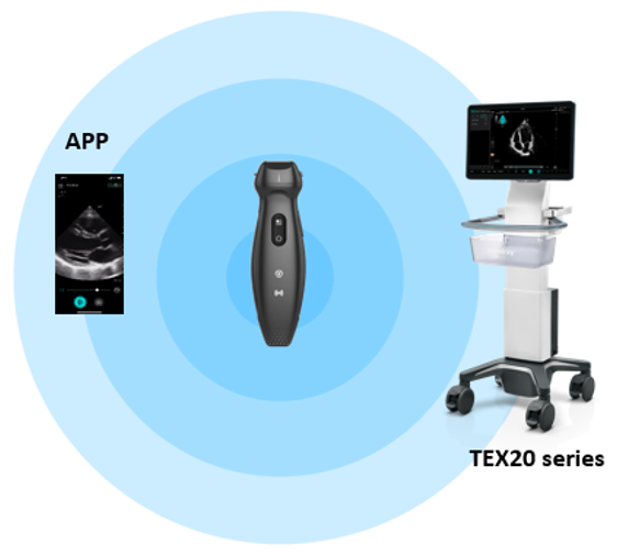 Aplikacja TE Air, dostępna dla systemów Android i iOS, doskonale równoważy prostotę i wydajność, umożliwiając obsługę jedną ręką w dowolnym miejscu. Głowicę można podłączyć do bardziej zaawansowanych aparatów, takich jak Mindray TEX20, co pomaga użytkownikom w eliminowaniu ograniczeń związanych z okablowaniem i ograniczoną przestrzenią, oferując jednocześnie najwyższą funkcjonalność. Aparat może również płynnie integrować się ze szpitalnymi systemami informatycznymi oraz współpracuje z aplikacją do telemedycyny Mindray MiCo+.