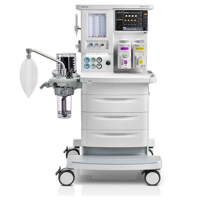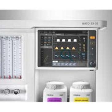 WATO EX-35 to nowoczesny, uniwersalny aparat do znieczulania średniej klasy, wyposażony w szereg zzawansowanych technologicznie rozwiązań, który dedykowany jest dla pacjentów w każdym wieku od noworodków po dorosłych. Aparat WATO wyróżnia się doskonałym designem, a także wieloma rozbudowanymi funkcjami. Kolorowy ekran dotykowy LCD wyświetla wszystkie parametry, a jednocześnie jest w stanie prezentować nawet do 3 krzywych (przepływ i ciśnienie jedocześnie) oraz wartości TV, MV, f, PEEP, Elektroniczne wyświetlanie wartości przepływów połączone jest z możliwością prezentacji wirtualnych przepływomierzy na ekranie aparatu. Wysokiej jakości respirator aparatu WATO posiada 5 różnych trybów wentylacji mechanicznej. Oprócz standardowych trybów VCV i PCV możliwa jest również wentylacja w trybie SIMV ze wspomaganiem ciśnieniowym PS oraz objętościowym VC oraz PSV z możliwością oddechów spontanicznych pacjenta. Rozbudowana statystyka umożliwia podgląd 24-godzinnych trendów zawierających parametry wentylacji oraz zdarzenia alarmowe. Dynamiczna kompensacja świeżych gazów kontrolowana poprzez 3 czujniki przepływu gwarantuje dokładność zadawanych objętości. Objętość układu wynosząca jedynie 2,6 l daje możliwość szybkiej reakcji na zmiany parametrów i jest idealna przy pracy z niskimi przepływami (low-flow). Podgrzewanie układu redukuje powstawanie wilgoci jak również zapobiega hipotermii pacjenta. Aparat WATO posiada możliwość rozbudowy o moduły pomiarów gazowych AG oraz kapnografii i BIS.