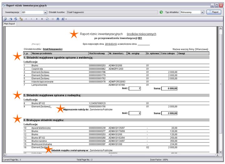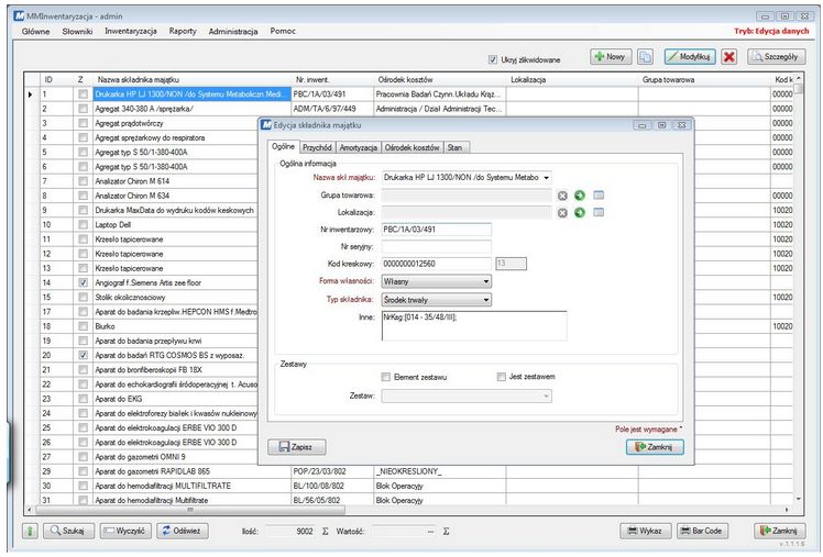 MM Inwentaryzacja to profesjonalne oprogramowanie wykorzystywane do przeprowadzania spisu z natury, jego rozliczania oraz audytu składników majątku placówek medycznych. Zawiera pełną ewidencję środków trwałych i wyposażenia. Generuje kody kreskowe, daje możliwość tworzenia zestawów, edycji danych, obsługi grup składników majątku, miejsc użytkowania, listy dostawców, pracowników itd.