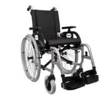 Wózek posiada demontowane, regulowane na wysokość oraz unoszone podłokietniki, a także odchylane, zdejmowane i regulowane na długość podnóżki.