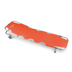 Lekkie i trwałe nosze na stelażu aluminiowym z dwoma kółkami i dwoma nóżkami aluminiowymi. Wznos leża do 65 stopni.