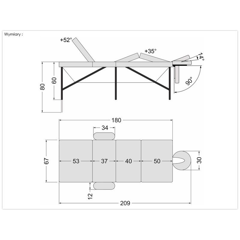 180 cm (210 cm z zagłówkiem)