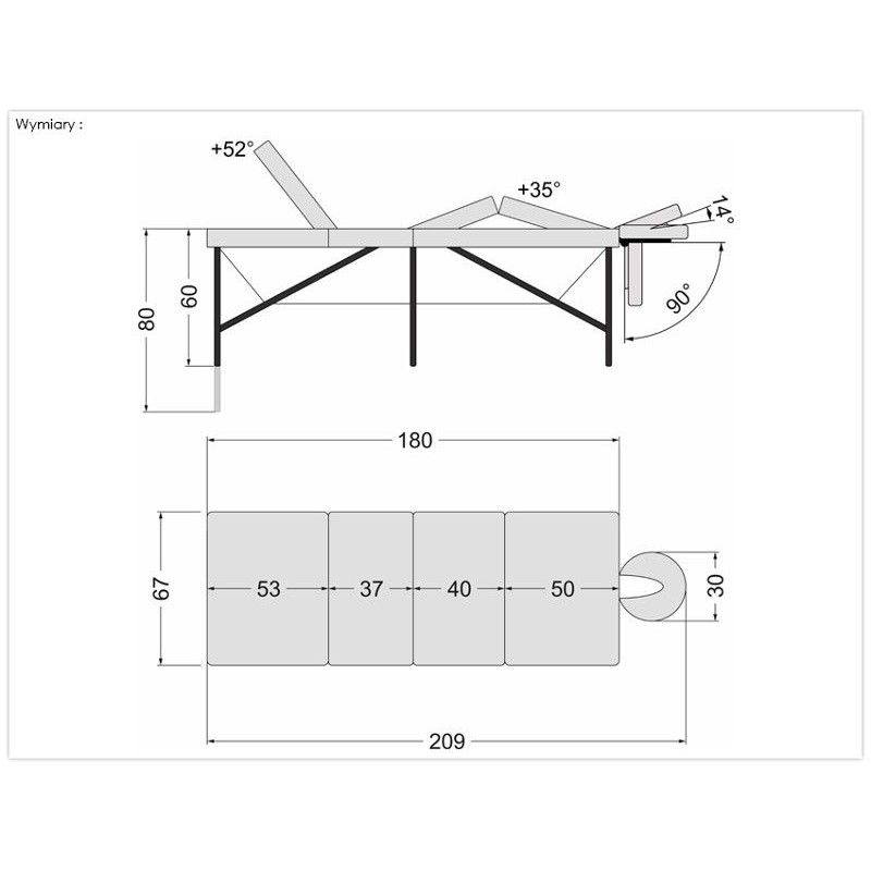 180 cm (210 cm z zagłówkiem)