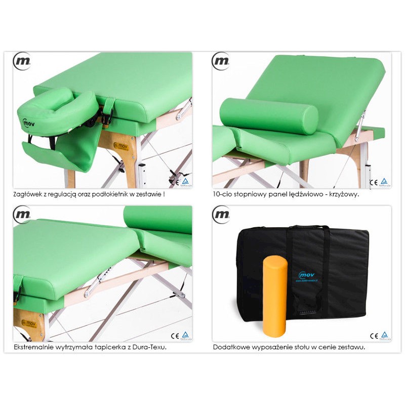 Stoły te zostały stworzone z myślą o masażystach poszukujących wytrzymałego, odpornego na bardzo częste rozkładanie i składanie, stabilnego i wygodnego stołu do wytężonej pracy. Dzięki zastosowaniu najnowszych cyfrowych technologii obróbki drewna uzyskaliśmy niepowtarzalne i jedyne w swoim rodzaju detale wykończeniowe. Każda z części składowych stołu wykonana jest z maksymalna precyzją, jest gładka, miła w dotyku, estetyczna i co najważniejsze bezpieczna. Nowoczesna technologia produkcji pozwala Nam na wykonanie produktu spełniającego najbardziej rygorystyczne normy, stabilnego, ekstremalnie wytrzymałego i bezkonkurencyjnego w swojej kategorii cenowej.
