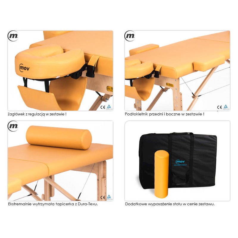 Stół do masażu Premium to stół o prostej i o zwartej i stabilnej budowie. Przeznaczenie tego stołu to masaż klasyczny, sportowy, refleksologia oraz wszelkie techniki manualne i zabiegi kosmetyczne. Charakteryzuje się zwartą budową, prostotą obsługi i dużą stabilnością poprzeczną. Wycięte panele z przodu i z tyłu stołu umożliwiają ułożenie nóg masażysty pod stołem. Stoły te zostały stworzone z myślą o masażystach poszukujących wytrzymałego, odpornego na bardzo częste rozkładanie i składanie, stabilnego i wygodnego stołu do wytężonej pracy. Dzięki zastosowaniu najnowszych cyfrowych technologii obróbki drewna uzyskaliśmy niepowtarzalne i jedyne w swoim rodzaju detale wykończeniowe. Każda z części składowych stołu wykonana jest z maksymalna precyzją, jest gładka, miła w dotyku, estetyczna i co najważniejsze bezpieczna. Nowoczesna technologia produkcji pozwala Nam na wykonanie produktu spełniającego najbardziej rygorystyczne normy, stabilnego, ekstremalnie wytrzymałego i bezkonkurencyjnego w swojej kategorii cenowej.