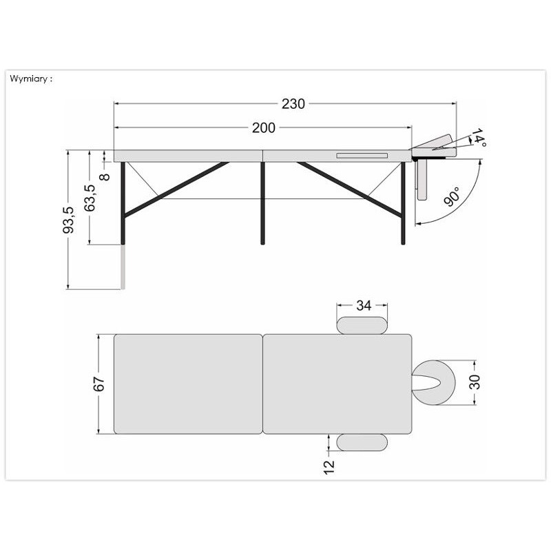 180 cm (210 cm z zagłówkiem)