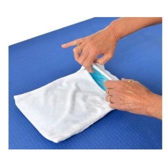 Miękki pokrowiec na kompres chroniący skórę podczas stosowania zimnych lub gorących okładów. Wykonany z poliestru, nadaje się do prania w pralce.