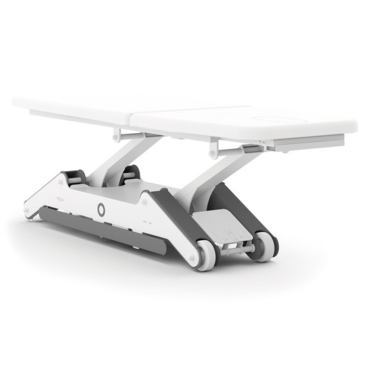 Wysokiej jakości 2 segmentowa leżanka charakteryzuje się prostym i nowoczesnym wyglądem. Intuicyjny system regulowania wysokości bo obu stronach stołu wspomaga sterowanie nożne. N'GO został zaprojektowany z największą dbałością, aby stworzyć produkt praktyczny i kompaktowy,a wszystkie rozwiązania techniczne będą wkomponowane w jego konstrukcję. Wysokiej jakości tapicerka z tkaniny powlekanej winylem, zapewnia trwałość i odporność w środowiskach medycznych.