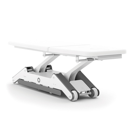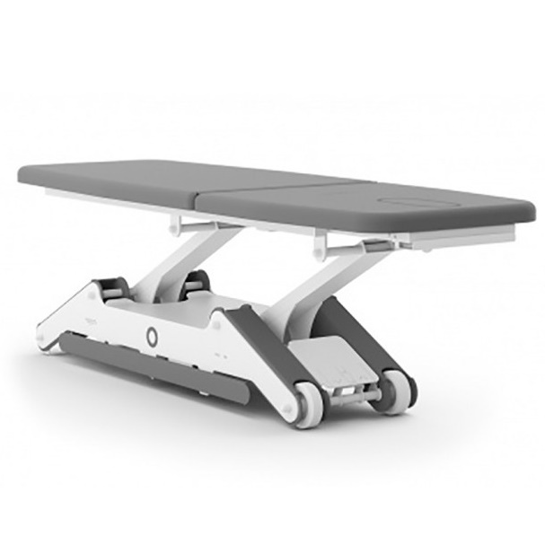 Wysokiej jakości 2 segmentowa leżanka charakteryzuje się prostym i nowoczesnym wyglądem. Intuicyjny system regulowania wysokości bo obu stronach stołu wspomaga sterowanie nożne. N'GO został zaprojektowany z największą dbałością, aby stworzyć produkt praktyczny i kompaktowy,a wszystkie rozwiązania techniczne będą wkomponowane w jego konstrukcję. Wysokiej jakości tapicerka z tkaniny powlekanej winylem, zapewnia trwałość i odporność w środowiskach medycznych.