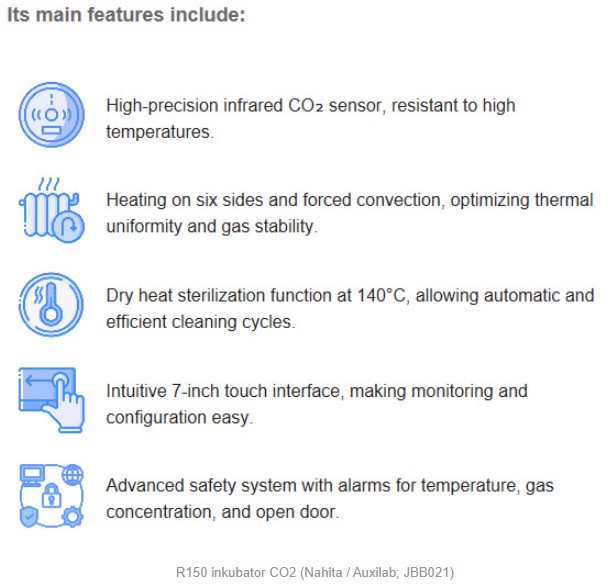 Inkubator CO2 Nahita zapewnia odpowiednie środowisko do stymulowania wzrostu mikroorganizmów, komórek i tkanek. Znajduje zastosowanie w badaniach kinetyki komórek, hodowli komórek ssaków, badaniach nad rakotwórczym lub toksykologicznym działaniem różnych czynników fizycznych i chemicznych, badaniach i produkcji antygenów, badaniach nad komórkami macierzystymi, inżynierii tkankowej, przesiewaniu leków oraz innych dziedzinach badawczych.