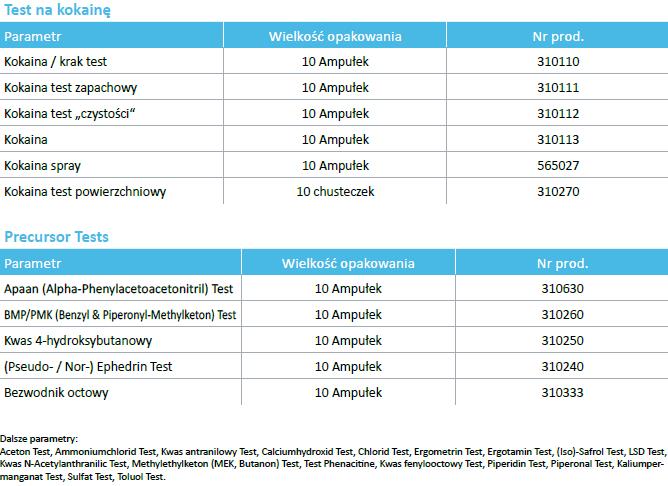 Testy do identyfikacji substancji oparte są na mokrej reakcji chemicznej i gwarantują łatwą procedurę przeprowadzenia.