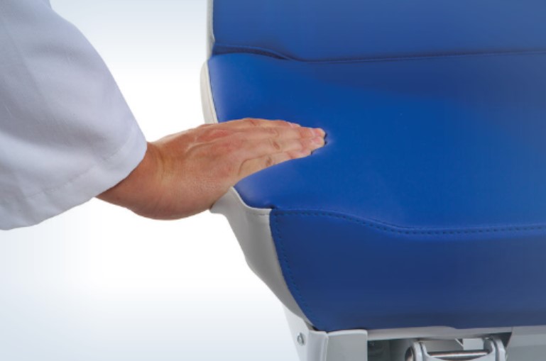 Fotel MEGA dostępny jest w dwóch wersjach różniących się funkcjonalnością: MEGA 3 oraz MEGA 4. W każdej wersji fotel jest podnoszony, obracany i rozkładany za pomocą silników elektrycznych uruchamianych sterownikiem nożnym. Podnóżek jest ruchomy, w modelu MEGA 3 podnoszony ręcznie, w modelu MEGA 4 podnoszony elektrycznie. Oparcie rozkładane jest symultanicznie z podłokietnikami do pozycji horyzontalnej lub Trendelenburga (-20°). Podłokietniki są podnoszone, każdy niezależnie. Fotel obracany jest 360° w prawo i w lewo. Zagłówek ma regulację w trzech płaszczyznach. Tapicerka bezszwowa, wykonana ze skóry ekologicznej, dostępna w 18 kolorach.