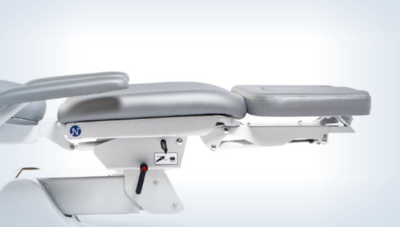 Fotel ORION podnoszony jest za pomocą silnika elektrycznego uruchamianego sterownikiem nożnym. Nachylenie oparcia i podnóżka regulowane są manualnie. Oparcie rozkładane jest do pozycji horyzontalnej. Podłokietniki są podnoszone, każdy niezależnie. Fotel obracany jest 70° w prawo i 70° w lewo. Zagłówek może być z ustawianą wysokością lub regulowany w trzech płaszczyznach (opcja dodatkowa). Tapicerka bezszwowa, wykonana ze skóry ekologicznej, dostępna w 18 kolorach.