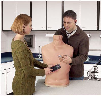 Osłuchowy trenażer serca i płuc służy do treningu osłuchiwania różnych odgłosów serca i płuc do złudzenia przypominających odgłosy serca i płuc naturalnego pacjenta.