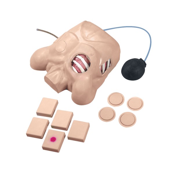 Zalety i cechy: Fantom do nauki odbarczania odmy i drenażu opłucnejPrawa strona manekina ma dwa odcięte do oglądania obszary , zapewniające świadomość anatomicznych relacji pomiędzy powierzchnią skóry, mięśniami, żeber i płuc. Po lewej stronie znajduje się pod ciśnieniem witrynę odma opłucnowa napięcia uśmierzać powietrze nagromadzone w obrębie jamy opłucnej i ogranicza inflację płuc. Jest też miejsce, gdzie rury klatki piersiowej mogą być umieszczane chirurgicznie leczyć płyn w jamie opłucnej przez odprowadzanie płynów z jamy opłucnej. Kolor płynu, objętość i lepkość są kontrolowane przez instruktora. Manekin jest idealny do nauki koncepcji i mechaniki zamkniętych systemów odwadniających, takich jak woda fok jednostek typu Pleur-ewakuacji