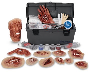 Zestaw imitacji ran stworzony z zachowaniem niezwykłego realizmu w zobrazowaniu i oddaniu struktury ran twarzy, przedramienia, klatki piersiowej, dłoni, nóg, kostki itp. Rany mogą być używane na pozorancie lub fantomie. Część ran to rany krwawiące wykonane z łatwo zmywalnego materiału.