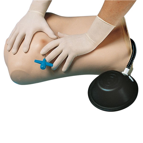 Symulator odmy opłucnowej zalecany przez stowarzyszenie instruktorów EMT (Emergency Medical Training) umożliwia przeprowadzenie instruktażu delikatnych procedur prawidłowego postępowania w przypadku przebicia ściany klatki piersiowej, w której zapadnięte płuco zakłóca oddychanie pacjenta i powoduje wypływ krwi. Model umożliwia stosowanie igieł i wykonanie torakotomii w drugiej przestrzeni międzyżebrowej w linii środkowo obojczykowej, piątej przestrzeni międzyżebrowej w linii pachowo środowej. Model dostarczany z pompką ręczną, wymienną jamą opłucnową i torbą ochronną. Igła nie wchodzi w skład wyposażenia.